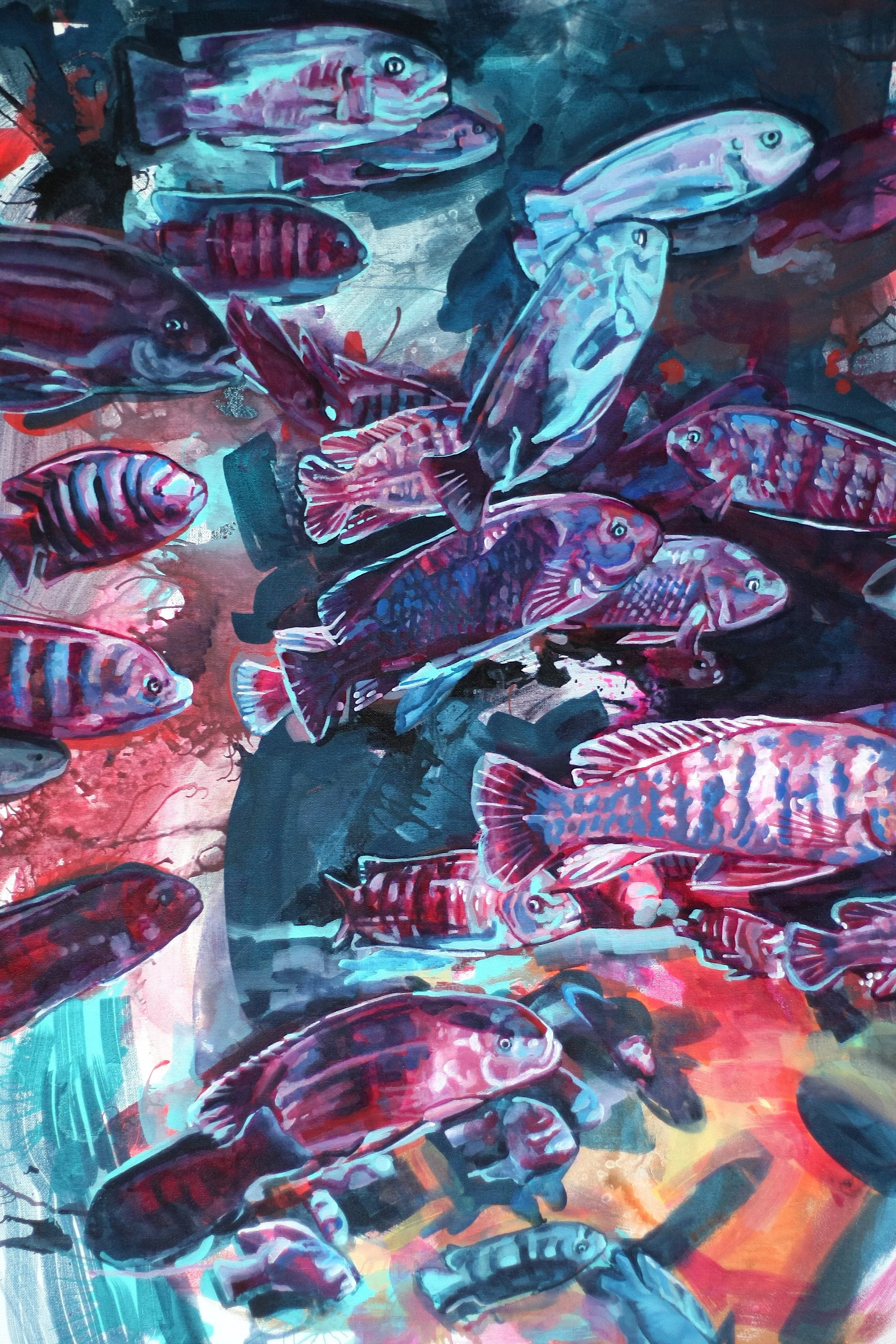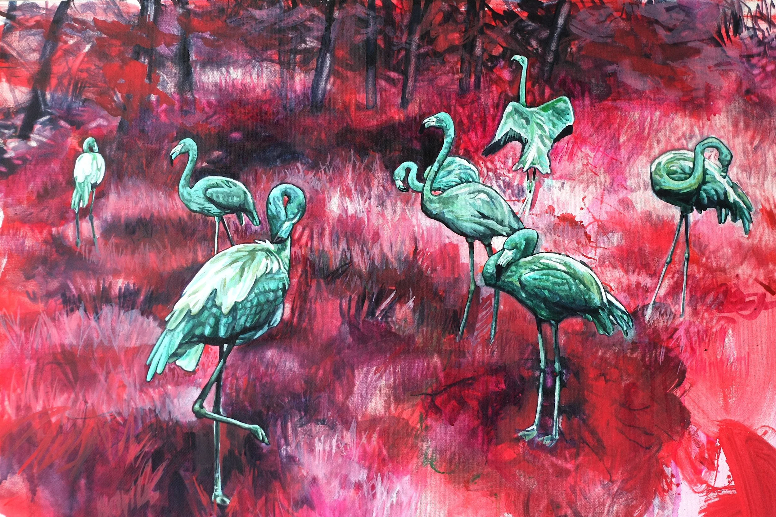 This series explores the luminosity of acrylic inks on canvas, using reductive and additive techniques that play with and push the boundaries of a challenging yet versatile medium. Straddling the line between representation and abstraction, each piece becomes a vibrant reflection on wild animals, unseen worlds, and the fragile diversity of shared ecosystems. In a time when eco-conscious values are often sidelined, the work calls attention to the uncertain future of our wild planet.
